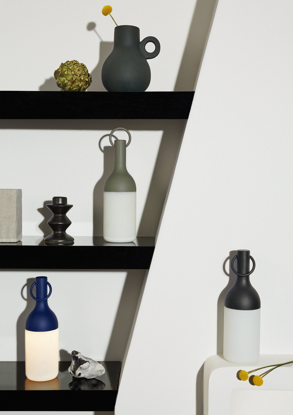 The Elo portable lamp plays with appearances by bottling up the light and abolishing the boundaries between inside and outside.